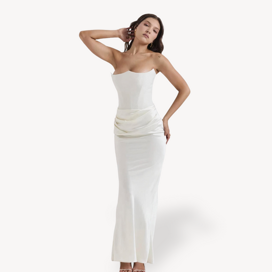 Women’s Strapless Satin Corset Maxi Dress – Formal Gown in Multiple Colors