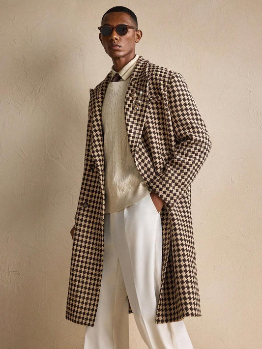 Classic Plaid Woolen Long Coat - Warm Winter Overcoat
