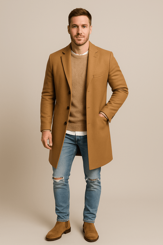 Warm Plaid Mens Winter Coat - Classic Fit Overcoat