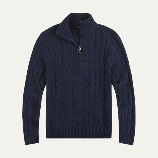 Men’s Mock Neck Quarter Zip Cable Knit Sweater