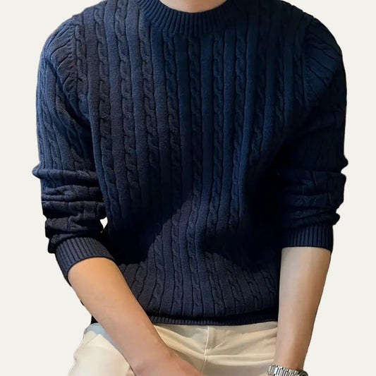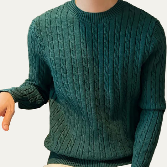 Men’s Classic Cable Knit Wool Crewneck Sweater