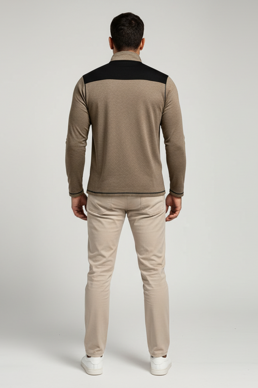 Sweater - High Collar Spun Blend & Half Zip Adjusts Fit