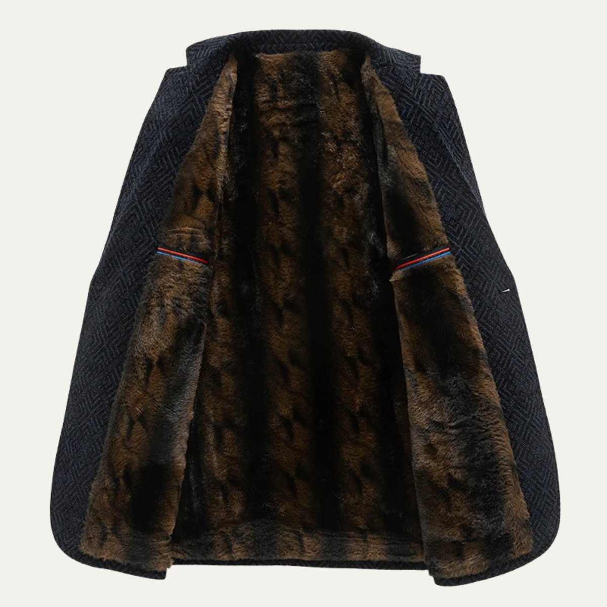 The Men’s Diamond-Textured Blazer combines classic tailoring with modern comfort. Featuring a subtle diamond-pattern texture on the exterior and fully lined with plush high-pile faux fur, this blazer keeps you warm while maintaining a sleek and polished appearance. Perfect for office meetings, dinner events, or casual business outings, it’s a sophisticated addition to any wardrobe.